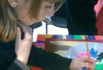 Voici ma petite manon, elle a peint un tableau avec d'autres enfants, ce tableau sera exposer à la mairie de Neuville Vitasse, très joli tableaux avec des girafes, des chats, etc..... super les enfants