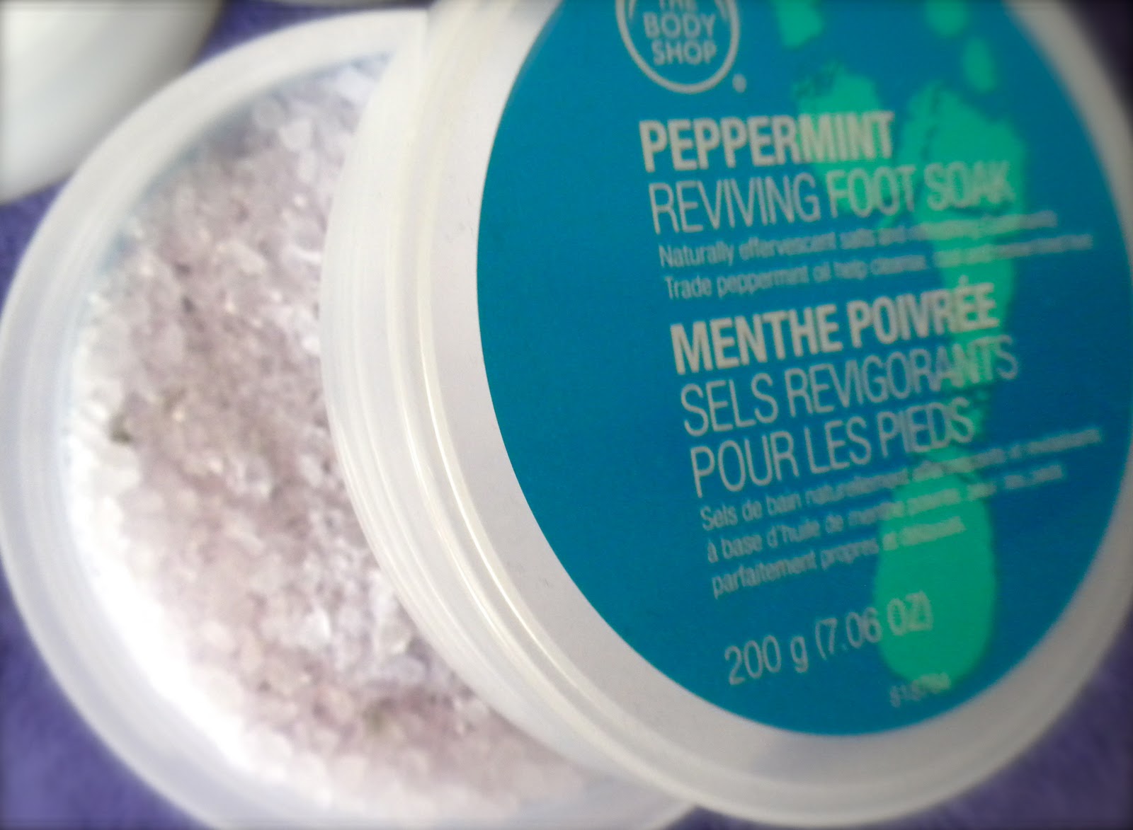 *Boutique Lush Nantes, au prix de 10 eurosAprés avoir utilisé ça, en général je me fais un bain des pieds avec des sels de bain à la menthe poivrée de chez The Body Shop, ils sont légèrement effervescents et rafraîchissant. Ils détendent bien mes petons après une journée de cours, à faire en prenant son temps devant la télé.