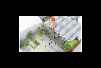 Le vaste bâtiment aux allures d’usine désaffectée dont la ville a fait l’acquisition, ne subira pas de profond remodelage. Une serre bioclimatique qui permettra de chauffer les locaux, ainsi qu’une cheminée « phare » verront le jour. Cette dernière sera un petit jouet technologique indiquant à son sommet des informations climatiques ainsi que les différents indicateurs de performance énergétique du bâtiment en temps réel.