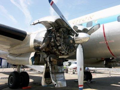Ce Lockheed L-1049 Super Constellation (HB-RSC) est équipés de 4 moteurs Wright 3350-18 Cyclone de 18 cylindre en double étoile pour une cylindrée totale de 55 litres (par moteur). Pour plus d'information sur l'origine et la fiche technique de ce moteur, je vous recommande vivement ce sitehttp://aviatechno.free.fr/constellation/moteurs.php