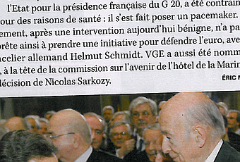 Alors que ses idées conservatrices ont failli empêcher la création du centre Pompidouà Beaubourg, il y a déjà 35 ans, Valéry Giscard d'Estaing ne semble pas vraiment bien placé pour juger les projets de modernisation de l'Hôtel de la Marine. Surtout qu'à 89 ans, la santé de l'homme pose question...