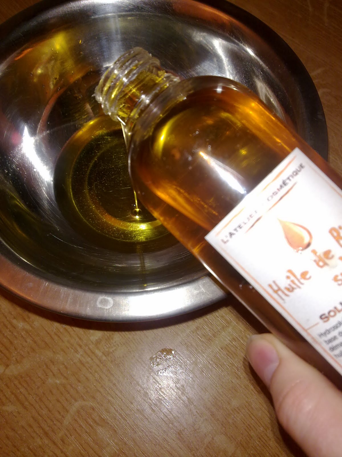 3/ Ensuite je rajoute dans ce bol inox l'huile de carthame :