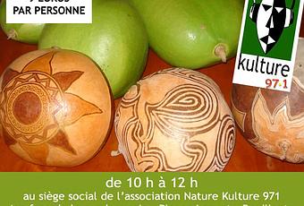 L'association Nature Kulture 97.1 organise un atelier gravure sur calebasse.Thème : apprendre à couper, vider et graver une calebasse. Première étape, apprendre à bien découper une calebasse et à la nettoyer. Ensuite, à l'aide de mini perceuses et de gouges mises à disposition, chacun découvrira ses talents cachés de graveur et repartira avec son œuvre.