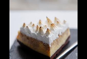 Pour la meringue : Monter les blancs d’œuf en neige ferme, puis ajouter progressivement le sucre glace. Les blancs doivent être bien compacts. Transférer dans une poche à douille pour le dressage. Comme le cheesecake à déjà cuit, il suffit de faire brunir les pointes à l’aide d’un chalumeau à gaz pour la cuisine (attention, ça brûle vite).