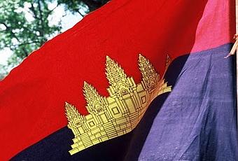 Drapeau cambodgien avec Angkor Wat comme emblème