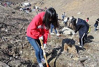 Chaque région organise des activités le jour de la plantation des arbres. Des lycéens, des fonctionnaires et d’autres personnes y participent dans les montagnes.