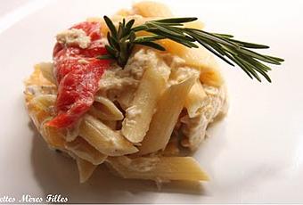 Cette recette est une recette que ma pote Amel avait rapportée d’Italie. Depuis le jour où je l’ai goutée chez elle, elle ne m’a plus quittée et est devenue une de mes recettes fétiches ! C’est très gourmand !Préparation 5 minutes / Cuisson 11 à 12 minutes + 15 minutes si vous utilisez des poivrons fraisIngrédients pour 3 personnes : - 200g de penne
