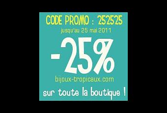 Le code promo de -25% est valable sur toute la boutique, nouveautés et bijoux pas chers inclus, il est valide jusqu'au 25 mai : il faut fêter les bientôt un an de bijoux-tropicaux ! Aujourd'hui je vous propose de (re)découvrir l'un de ces bijoux modifiés, il s'agit d'un sautoir tropical.
