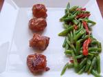 Faire réchauffer dans un peu de beurre (ou d'huile de sésame) les haricots et le piquillos. Rajouter un peu de sauce soja pour les saler. Servir le tout.