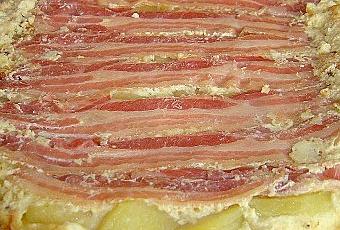 Tapisser un moule à manqué ( à tarte pour moi) de papier sulfurisé.Déposez y les tranches de lard fumé les unes à côté de autres.