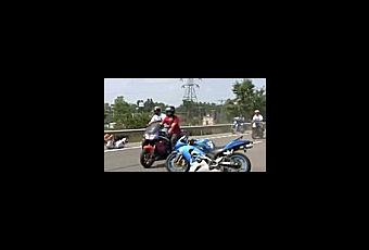 Des motards roulent sur la roue arrière , mais la moindre perte d'équilibre à de lourdes conséquences