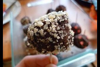 - puis ajouter la décoration en roulant les boules dans le chocolat qui pétillent pour moi, j'ai ajouté à la mains les cœurs en sucre.