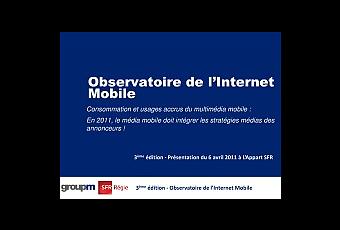 Baromètre réalisé à partir d'un enquête en ligne exclusive sur un panel (1007 individus) représentatif de la population française de 16 à 65 ans. Périmètre des terminaux ; Téléphones Mobiles (hors tablettes tactiles).En résultat dans cette enquête : Des abonnés de plus en plus connectés, Population des mobinautes : un cap franchi en 2011, Une progression de la consommation sur tous les contenus, Une consommation des médias sur mobile qui progresse dans tous les contextes, De nouveaux usages pour de nouvelles pistes d'utilisation du média mobile, le mobile : un prolongement nécessaire.