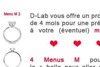 Mais ce n’est pas tout. Notre Fleur qui prépare activement son mariage qui aura lieu en août (FIESTA !! ) s’est concocté un programme de choc en 4 mois pour être canon le D-Day. A cette occasion, nous offrons à toutes celles qui créeront ou se connecteront à leur espace personnel, une chance de remporter ce programme intense de préparation à leur (éventuel) mariage. Découvrez ces 4 menus et gagnez-les sur www.dlabshop.com/shop