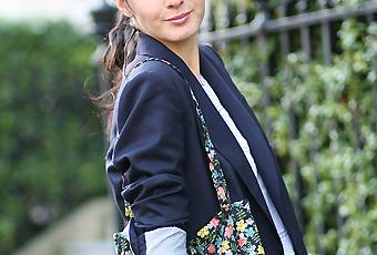 Blazer Zara – blouse et short The Kooples – sandales Topshop – sac d’appoint en tissu liberty Catherine Membré