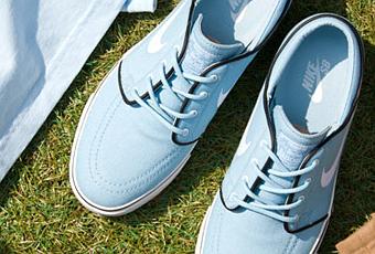 Ces nouvelles Nike SB Zoom Stefan Janoski Soft Blue/White issues de la collection juin 2011 de Nike SB matcheront parfaitement avec le ciel bleu estival. Inspirée des chaussures bateaux, la paire arbore un dessus en daim bleu ciel contrasté par du noir et du blanc.