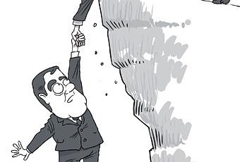 Alors, rien d'étonnant dans ce dessin de Sergueï Elkine, dans lequel Poutine dit à Medvedev : "Oh, oh, oh, je crois que notre tandem va se scinder..." Pauvre Medvedev !