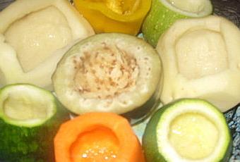 Ensuite on mélange la viande hachée avec les épices et le riz et en farcir les légumes