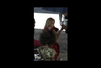 Voici trois nouvelles photos du tournage de la prochaine video de Beyoncé, elle porte une robe Alexander Mc Queen.