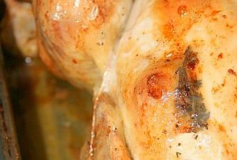 Mettre au four pour 1 heure 30 environ ( tout dépend de la taille de votre poulet) en arrosant régulièrement le poulet.
