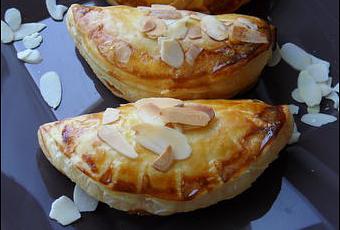 Couper des cercles dans la pâte feuilletée à l'aide de l'empreinte à chausson. Poser le cercle sur l'empreinte et la garnir de compote de pommes. Pendant ce temps, faire griller quelques amandes effilées.