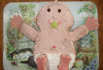 Magnifiquegâteau en forme de bébé qui dort ou mort... mmm délicieux, mais le moment de couper le gâteau semble délicat !