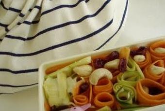 Cette salade est parfaite pour le bento (lunch box), parce que d'une part les légumes ne rendent plus d'eau et que la marinade (ou la "vinaigrette") se gélifie et peut ainsi être mise dans un petit contenant spécial à cet effet.