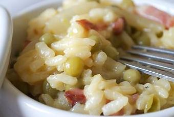 Risotto de petit pois et lardons