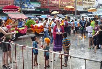 Si j'ai pu compter sur les doigts d'une main les touristes que j'ai croisés en une journée, c'est par dizaines que je me suis pris des seaux d'eau dessus. Les « farangs » sont une cible privilégiée. Pour ceux qui ne savent pas : c'est le terme qu'utilisent les Thaïs pour désigner les Européens (et Américains) en général, et ça viendrait de la transcription phonétique du mot « Français », ces derniers ayant été les premiers Européens à faire leur entrée dans le royaume des Siams. Le mot signifie également « goyave »...