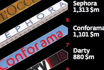 Sur ce top 10, toutes les capitalisations des enseignes connaissent une croissance positive dont un record pour Sephora, qui voit sa valeur bondir de 22% en un an. Cette tendance n’est pourtant pas le cas chez nos voisins Allemands, Espagnols et Anglais.