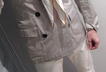 Autre essai avec un jean brut stretch Dior Homme, un tshirt en cachemire perforé taupe Hermès et un petit blouson de coton Dior Homme.