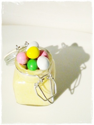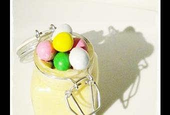 Ingrédients : 200g de mascarpone, 75g de sucre, 2 oeufs, 50g de beurre de cacahuète et quelques m&m's pour la déco