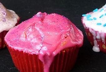 Préparer le glaçage, dans un bol mélanger le sucre glace et le citron, pour colorer séparer la préparation en 2 et ajouter du colorant dans l’une d’elle puis étaler sur vos cupcakes et décorer.