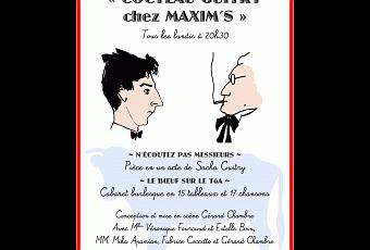 Cocteau-Guitry chez Maxim’s, un excellent spectacle d’adaptation de Guitry et de Cocteau : « N’écoutez pas Messieurs » et » le Boeuf sut le toa »;