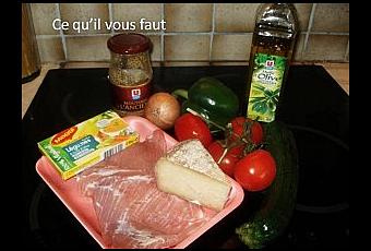 Idée de Joëlle : Je n’ai pas mis la tomme, vous savez pourquoi …. A la place j’ai tartiné mes tranches de porc de moutarde à l’ancienne !