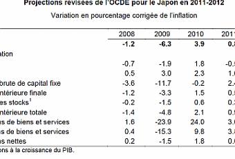 Le séisme a frappé le Japon au moment où le pays semblait avoir renoué avec une phase d’expansion après le ralentissement économique intervenu dans la dernière partie de 2010. Les retombées immédiates de la terrible catastrophe sont sans doute colossales, s’étendant au-delà des régions dévastées par le tremblement de terre et le tsunami. De fait, les dommages qu’ont subis les usines de la région du Tohoku ont perturbé les chaines d’approvisionnement des principaux produits industriels au-delà des frontières du Japon, en particulier dans le secteur automobile. La Banque du Japon, dans son rapport d’avril, a donc revu en baisse son évaluation de sept des neuf économies régionales du Japon. Cependant, l’expérience des catastrophes qui ont touché le Japon et d’autres pays développés dans le passé laisse penser que l’impact négatif à court terme sur la production économique sera suivi d’une reprise au fur et à mesure de l’effort de reconstruction. D’après les prévisions, ce schéma devrait entraîner en 2011 un ralentissement de la croissance du PIB réel à 0,8 %, puis un redressement en 2012 qui portera la croissance du PIB à 2,3 %.