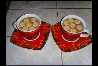 Servir, ajouter quelques petits biscuits, ici on les appelle les galletas de leche (biscuits au lait), vous