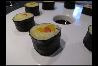 Répétez l'opération jusqu'à ce qu'à épuisement des ingrédients. Laissez reposer les makis au frigo pendant une heure, avant des les découper en rondelle. Servez avec de la sauce soja.