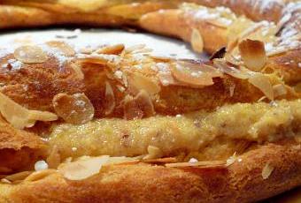 Dorer la pate avec le jaune d'oeuf et parsemer d'amandes effilées.