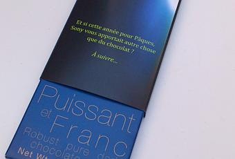 Tiens, tiens, regardez ce que nous venons de recevoir à la rédac’. Une tablette de chocolat de la part de Sony avec cette inscription : « Et si cette année pour Pâques, Sony vous apportait autre chose que du chocolat ? À suivre… » Pâque c’est dimanche, une tablette de chocolat, Sony, hum… Qu’en pensez-vous ?