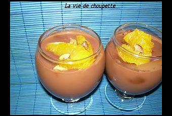 Ingrédients : 1 paquet de spéculos - 375ml de lait - 100ml de crème liquide - 75g de sucre - 100g de chocolat noir - 35g de maïzena - le jus de 2 oranges - zeste d'une orange