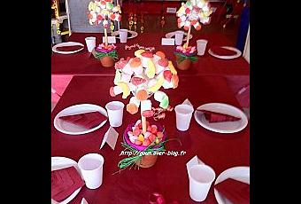 Pour l'anniversaire de sa puce, Valérie a réalisé 3 arbres en bonbons en s'inspirant de mon tuto.