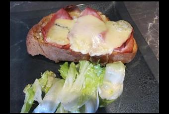 Badigeonnez les tranches de pain du mélange crème/vin blanc. Déposez les oignons dorés. Recouvrir de jambon puis de tranches de morbier. Déposez les tartines sur une plaque recouverte de papier sulfurisé. Mettre au four pendant 15 minutes à 200 °C.