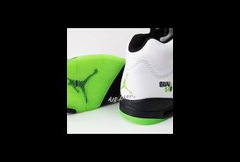 A l’occasion du Quai 54, qui est un tournoi de streetball annuel organisé à Paris, Jordan Brand a conçu un tout nouveau coloris de Air Jordan V (5) combinant du blanc, du noir et du vert néon. La Air Jordan V (5) Quai 54 affiche un dessus en cuir blanc contrasté par du vert néon, par une languette grise, par une semelle intermédiaire noire/verte/argentée et par le logo Quai 54 sur le talon.
