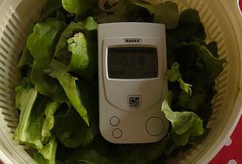 Donc pour la salade , à partir du moment où elle est lavée , les particules éventuelles vont dans la canalisation , voila un endroit intéressant pour mesurer les c/s (NB : les milisivers sont des doses intégrées , le genre d'appareil (ne dites plus Geiger , cela n'esiste plus que dans les films ) vu sur la photo ne peut le mesurer mais il mesure l'activité , si cela ne pépasse pas +/- 100 c/s aucun risque . Mesurez un oblet fluo et surprise ...