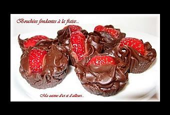 Pour 20 bouchées, il vous faut: 70 gr de beurre 500 gr de chocolat noir 400 gr de lait concentré 1 cuillère à café d'arôme naturel de vanille 10 fraises
