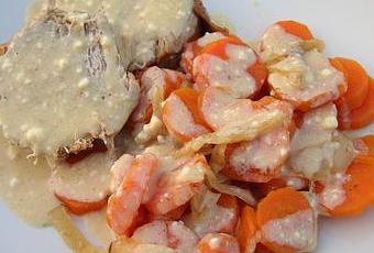 Servir la viande en tranche accompagnée des carottes et arrosée de sauce.
