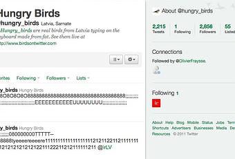 Pour ceux qui aiment les oiseaux et la nature, rendez-vous sur http://www.birdsontwitter.com/ Vous pourrez voir tweeter en temps réel et en images les petits oiseaux (mais en ce moment, il ne se passe rien, c’est l’été en Lettonie), visionner d’anciennes vidéos et aussi parler comme eux ! (je suis certaine que vous allez essayer, comme moi).