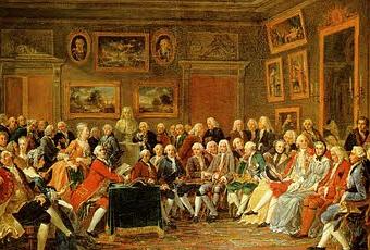 On sait le rôle des salons dans l’organisation de l’espace public au XVIIIe siècle, et on a vu dans le développement de cette forme particulière de sociabilité un des indices les plus évidents de l’affaiblissement, après 1715, du règne de la cour louis-quatorzienne au profit de la ville, en l’occurrence la capitale -et ses salons. Or, de 1727 à 1766, Madame Geoffrin, née Marie-Thérèse Rodet, tient précisément le premier et le plus influent de ces salons, ouvert aux personnes de qualité, aux artistes, aux «philosophes» et aux gens de lettres.