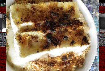 Évidemment le résultat tient davantage de la purée mais c’est cela qui est bon parce que les goûts sont ainsi liés. J’ai rempli un bol qui va au micro-onde, puis j’ai posé deux belles tranches de Lingot Bons Mayennais et recouvert de chapelure. On ajoute un peu de matière grasse à sa convenance pour assurer le dorage.